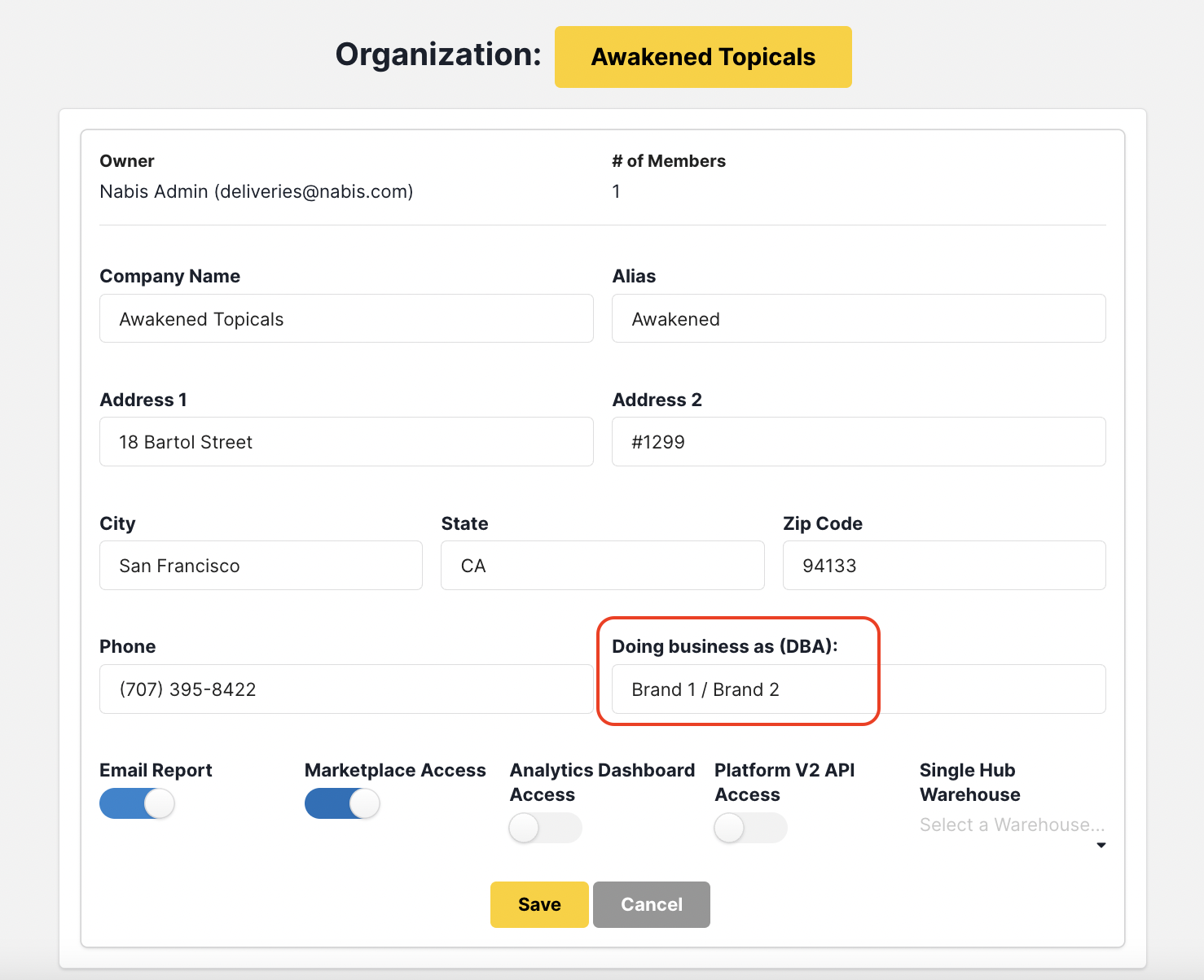 This will change your Brand Page display on the Marketplace, but please note, that this will also change your DBA on all future manifests and documentation (for normal Nabis orders as well).