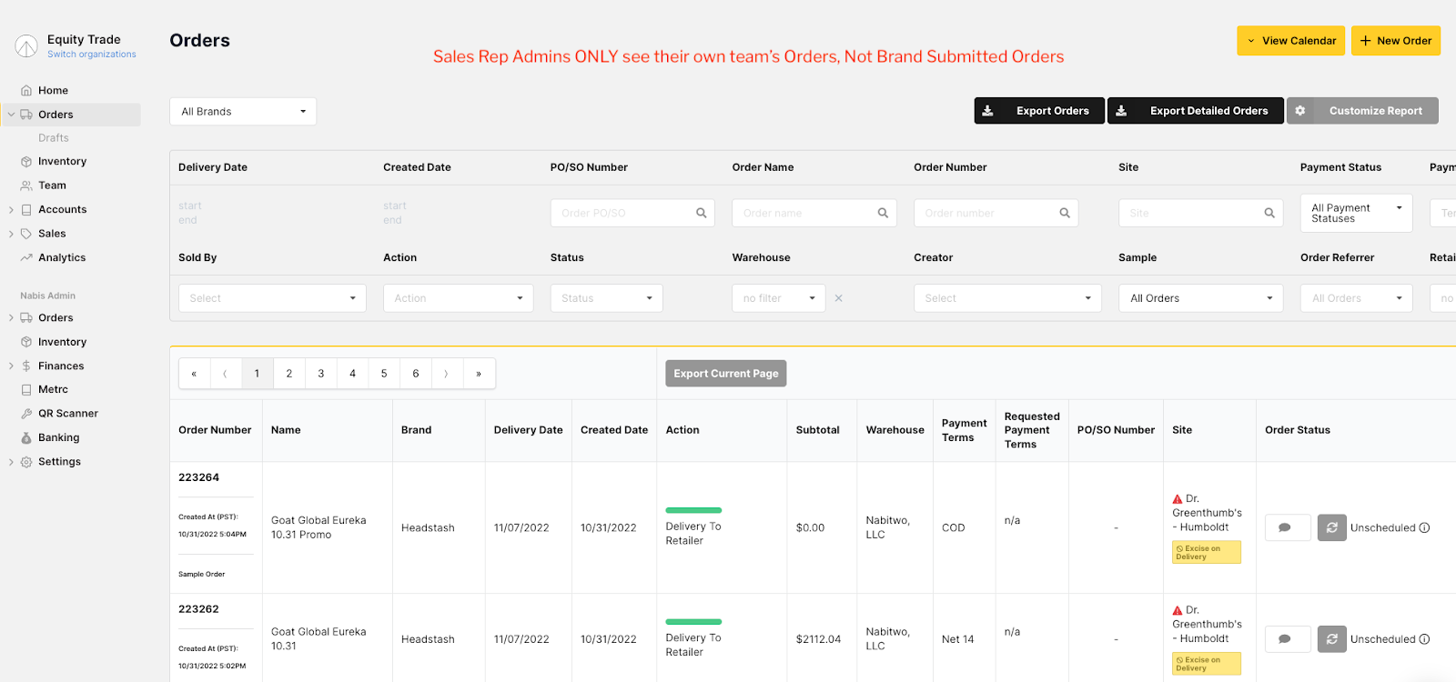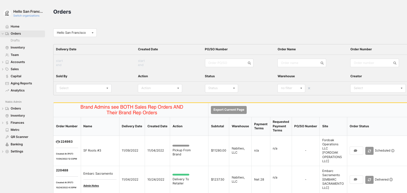 Brand Admins see ALL orders, including Sales Reps and Brand Reps, on their Orders Page.