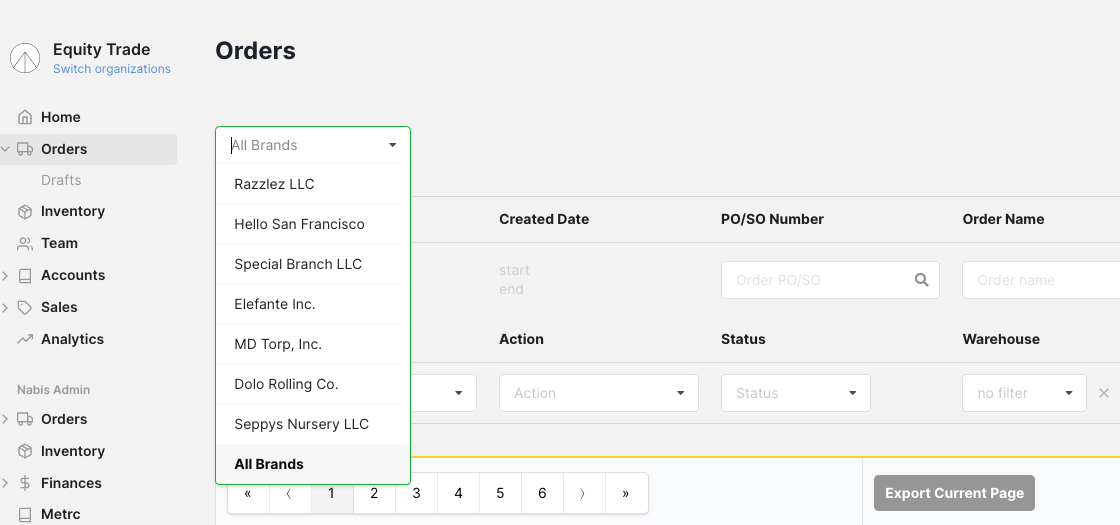 Go to the Orders Tab → ‘All Brands’, and select one of the Brands: