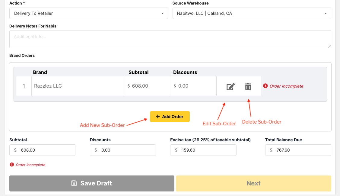 - Now, you can add additional Brand Suborders, Edit your existing sub-order, or remove it before final submission.