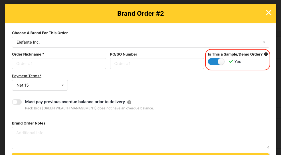 - Select the line items specifically for that Brand Sub-Order, and hit ‘Save Brand Order’ to go back to the main Order form.