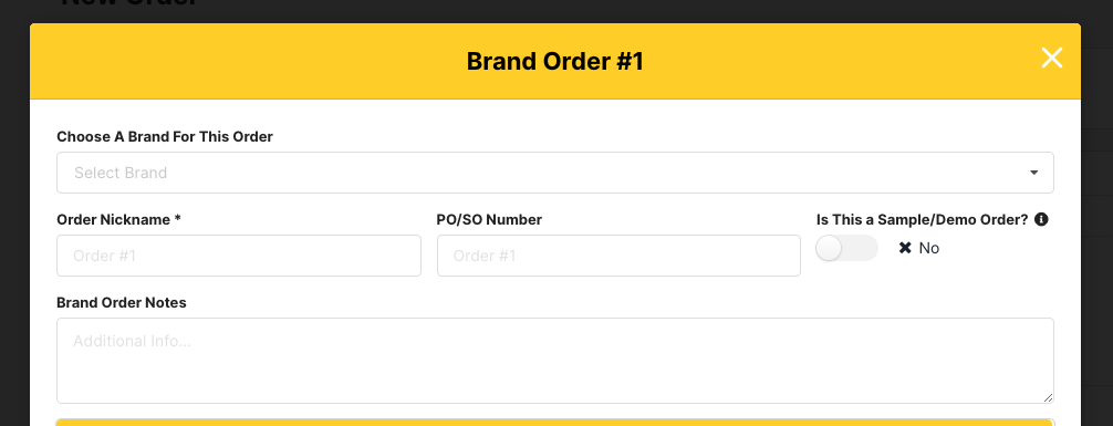 - Click the ‘Add Order’ button, which will then open up a Brand Sub-Order Window