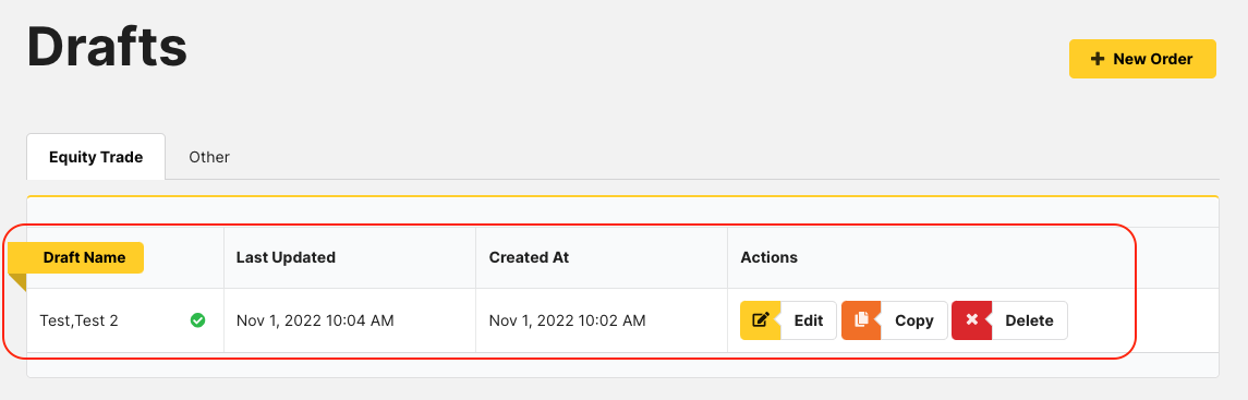 A Draft is a saved copy of the Parent order for a Sales team, so each of the Brand Suborders are saved together in one full draft in the Drafts Tab.